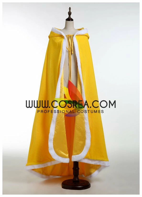 Hooded Satin Cape With Faux Fur Trim