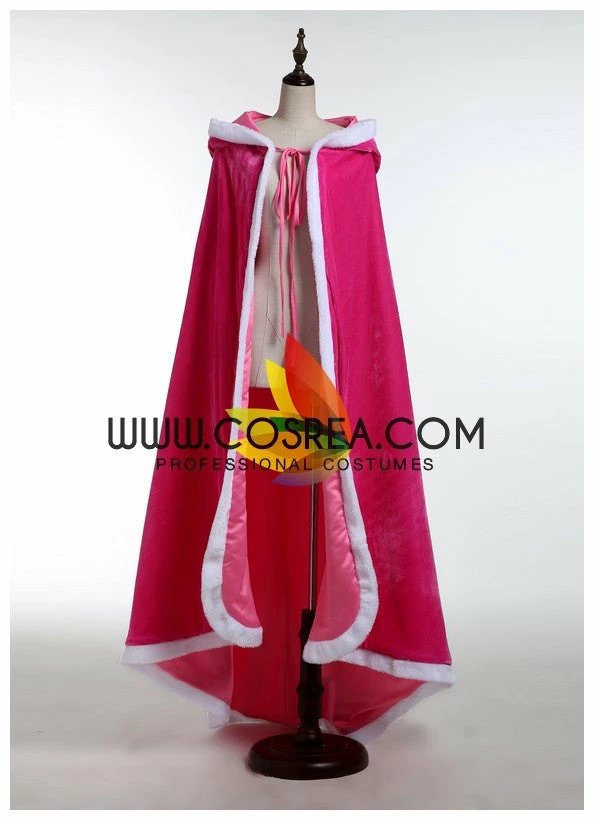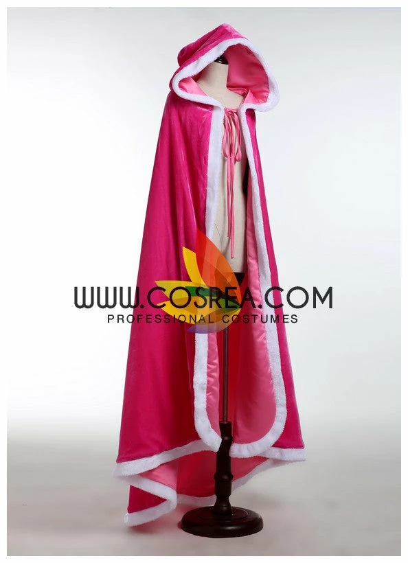 Hooded Satin Cape With Faux Fur Trim